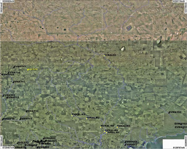 Three sites on Kalgan River, three sites on Napier Creek and two sites on Chelgiup Creek were sampled. One site on the Takenup Brook, Little Creek and Churchlane Creek were also sampled. An overview of this site is shown on the map above. Photographs are only available for the three Kalgan River sites: