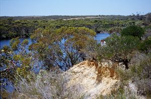 Through 1994 or 1995 you could smell the river as though there was something wrong with it. So I went down to investigate, and there was tons of dead fish on the river here. I got one of the CALM [Department of Conservation and Land Management] chaps to come up, and have a look. The river was low, it was terribly low, and it hadn't run through to flush out for about six years. I thought it had got too salt, but they come and did an inspection of it, and it wasn't that at all, the fish had run out of oxygen. We had about five days of 35-40 degrees, and it was dead still, and they had sort of run out of oxygen. The answer to it was, or as I have been told since, had we have set up a little water pump or anything just to move the water, they would have been alright, but that's the only time that the fish have ever died. I was a bit concerned for a while about it, that it might have cleaned them out, but next year they were there again. They're still there now. The fish don't go outside the [northern] boundary, strange as it may seem. There's a big rock ledge goes right across the river and there's no fish on the north of that."