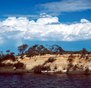 We used to go up the river on the southwest corner of our property, there's some rather pretty cliffs and there's an ochre type clay there. The children used to love going down there and collecting the stuff and making different things. Until, oh, about eight years ago we went down there in the middle of winter, it was pretty cool. We got down to about one hundred yards from the cliffs and we got attacked by a swarm of bees. So [we] dumped the eskies and everything and ran (laughs). We went back and picked them up a few days later, the esky and things, but we've never been back there since. So it must be a very vicious swarm of bees down there. And yet all the other years we've been down there we've never had any problems at all. The cliffs are probably sixty foot high I suppose, something like that, and there's numerous colours running through browns, creams and pinks and it's very pretty.